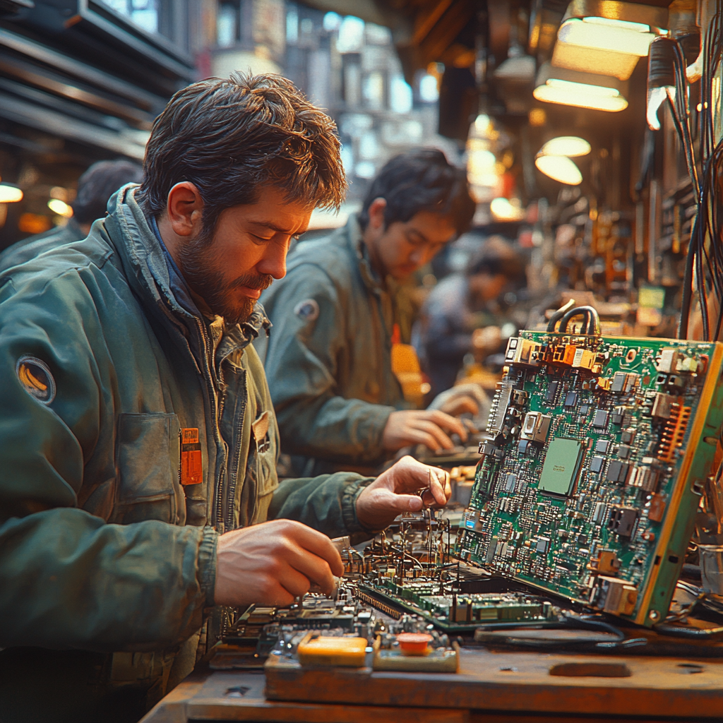 - Демонтаж, разборка, сортировка (металл, платы, пластик).